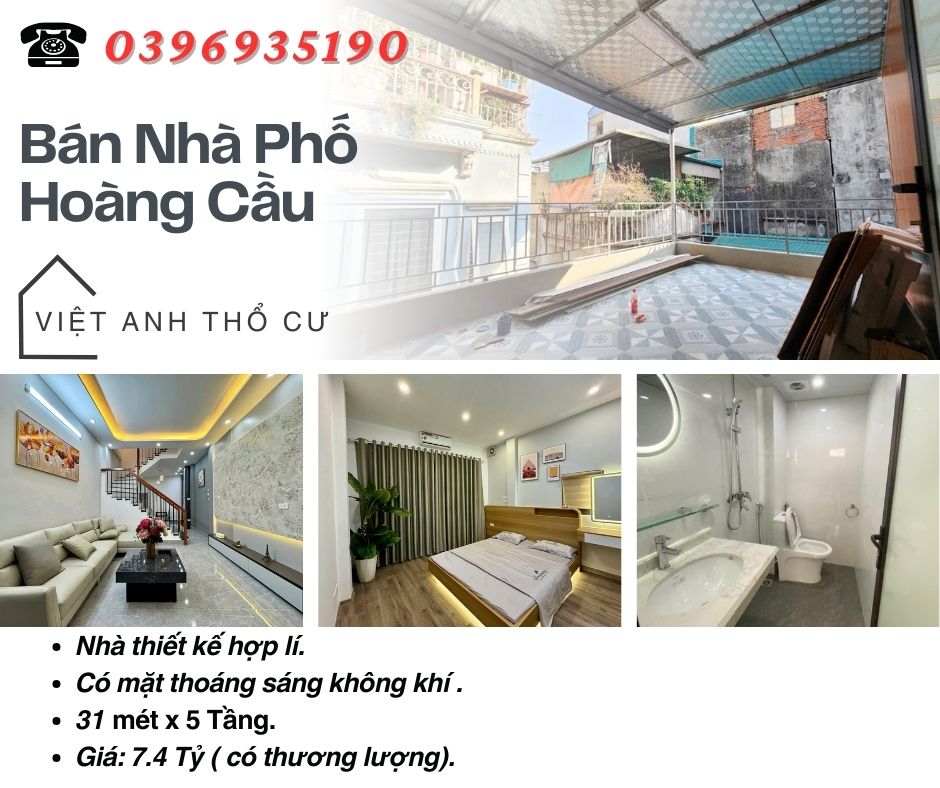 Bán nhà Phố Hoàng Cầu_Thiết Hợp Lí_Nhà Thoáng Sáng_31mx5T_Giá: 7.4 Tỷ_Lh; 0396935190.