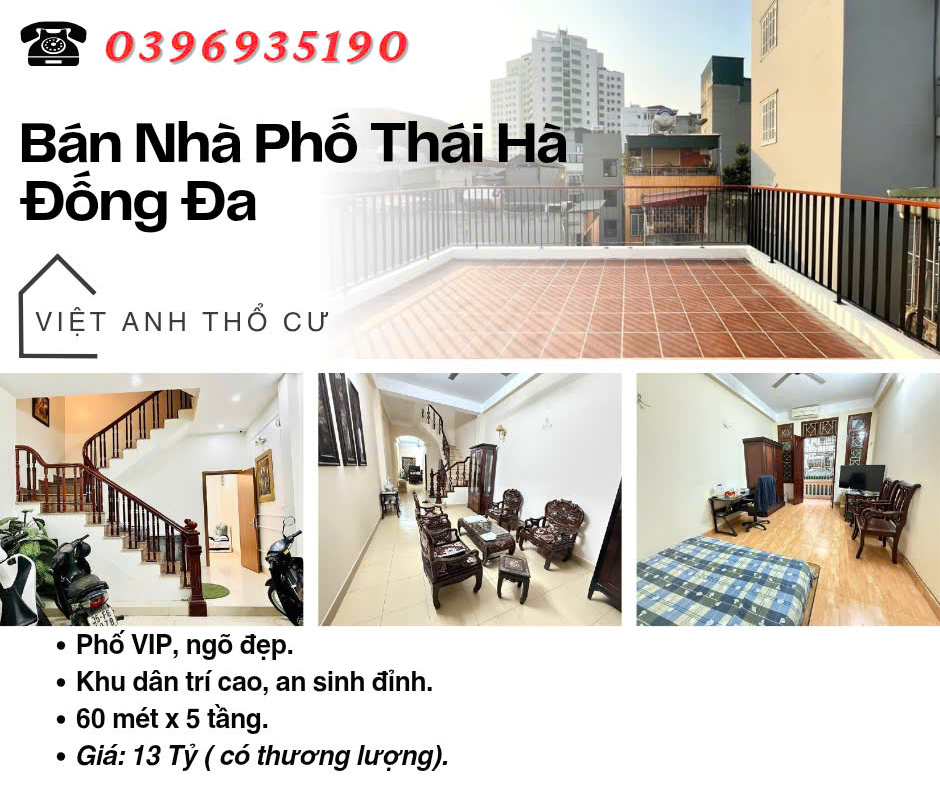 _ Anh Đức chủ nhà làm ngân hàng, anh sở hữu nhiều bất động sản ở Hà Nội. Anh đang có dự định bán bớt một hai căn trong phố để dồn tiền mua một biệt thự đơn lập của khu Vin. Vì thế anh có nhờ em Việt Anh rao bán nhà phố Thái Hà Đống Đa Hà Nội này. Đây là cơ hội hiếm có để sở hữu căn nhà vị trí VIP Đống Đa, ngõ đẹp, nhà đẹp. _ Nhà nằm trên con ngõ thoáng rộng, hai bên nhiều nhà cao tầng, biệt thự rất đẹp và hoành tráng. Khu dân cư dân trí cao, văn minh lịch sự. _ Thái Hà giáp với nhiều tuyến phố lớn như : Thái Thịnh, Láng Hạ, Tây Sơn, Nguyễn Lương Bằng, Chùa Bộc, Huỳnh Thúc Kháng, Nguyễn Chí Thanh, nên di chuyển dễ dàng, giao thông thuận lợi. _ Xung quanh tiện ích vô vàn: Đầu phố có bể bơi Thái Hà,3 phút ra Trung Tâm Chiếu Phim Quốc Gia, 4 phút ra hồ Hoàng Cầu, 6 phút ra Hồ Thành Công & Công Viên Thành Công, 7 phút sang tới Trung Tâm Thương Mại Mipec Tây Sơn, 8 phút tới Royal City.