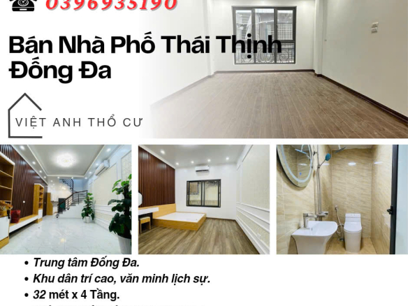 _ Anh Văn chủ nhà nhờ em Việt Anh rao bán nhà Thái Thịnh Đống Đa Hà Nội này để đổi sang căn khác to hơn rộng hơn. Anh chủ nhà là cán bộ viện nghiên cứu tính tình hiền lành, thật thà anh chia sẻ nhiều năm sống ở khu vực này không muốn rời đi nhưng vì gia đình cần không gian rộng hơn để sinh hoạt nên đành phải chuyển. _ Thái Thịnh luôn là một trong những con phố được mọi người tìm nhiều trên internet bởi phố tiếp giáp với nhiều tuyến phố lớn như : Thái Hà, Láng Hạ, Yên Lãng, Tây Sơn, Nguyễn Lương Bằng, Huỳnh Thúc Kháng, Đường Láng nên di chuyển dễ dàng, đi đâu cũng tiện cũng dễ. _ Giữa phố có Bệnh Viện Châm Cứu Trung Ương, bệnh viện Nội Tiết Trung Ương. _ Tiện ích thì vô vàn 3 phút ra Trung Tâm Chiếu Phim Quốc Gia, 4 phút ra Hồ Thành Công & Công Viên Thành Công, 7 phút sang tới Trung Tâm Thương Mại Mipec Tây Sơn, 8 phút tới Royal City. _ Xung quanh chợ dân sinh, cây xăng Thái Thịnh, cửa hàng tiện ích Winmart, nhiều hàng thuốc, hàng ăn hàng cafe đầy đủ không thiếu thứ gì. Gần nhiều trường học như trường Tiểu Học Thái Thịnh, trường THCS Thái Thịnh, trường cao đẳng nghề Công Nghiệp Hà Nội. _ Nhà thiết kế 4 tầng hợp lí phù hợp với nhu cầu mọi gia đình.