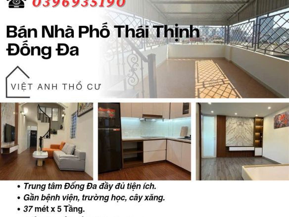 _ Gia đình cô Lý chú Quang chủ nhà nhờ cháu Việt Anh rao bán nhà Thái Thịnh Đống Đa Hà Nội này để đổi sang căn gần nhà con trai cả và các cháu nội ở trong quận Cầu Giấy. Cô chú đều đã về hưu nên muốn vui tuổi già bên các con các cháu. _ Nhà thuộc vị trí trung tâm Đống Đa có chợ dân sinh bán đủ thứ mà giá cả rất phải chăng, đầu phố có cây xăng Thái Thịnh, giữa phố có cửa hàng tiện ích Winmart, nhiều hàng thuốc, hàng ăn hàng cafe đủ loại. Xung quanh có nhiều trường học như trường Tiểu Học Thái Thịnh, trường THCS Thái Thịnh, trường cao đẳng nghề Công Nghiệp Hà Nội. _ Giữa phố có Bệnh Viện Châm Cứu Trung Ương, bệnh viện Nội Tiết Trung Ương. _ Thái Thịnh luôn là một trong những con phố được mọi người tìm nhiều trên internet bởi phố tiếp giáp với nhiều tuyến phố lớn như : Thái Hà, Láng Hạ, Yên Lãng, Tây Sơn, Nguyễn Lương Bằng, Huỳnh Thúc Kháng, Đường Láng nên di chuyển dễ dàng, đi đâu cũng tiện cũng dễ. _ Tiện ích thì vô vàn 3 phút ra Trung Tâm Chiếu Phim Quốc Gia, 4 phút ra Hồ Thành Công & Công Viên Thành Công, 7 phút sang tới Trung Tâm Thương Mại Mipec Tây Sơn, 8 phút tới Royal City. _ Nhà thiết kế 5 tầng hợp lí phù hợp hầu hết với mọi gia đình.