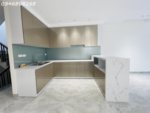 Tầng 5: Phòng bếp đã lắp đặt bếp đảo.