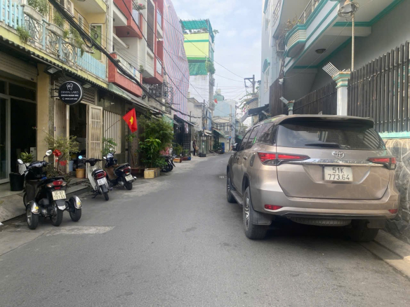 Hẻm trước nhà rộng rãi, xe hơi tránh nhau thoải mái