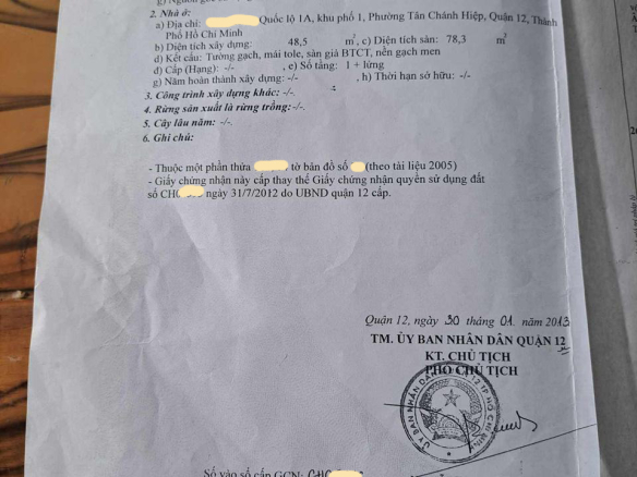 Bán nhà Quốc Lộ 1A Phường Tân Chánh Hiệp Quận 12, 64m2, nở hậu, giá chỉ 3.x tỷ