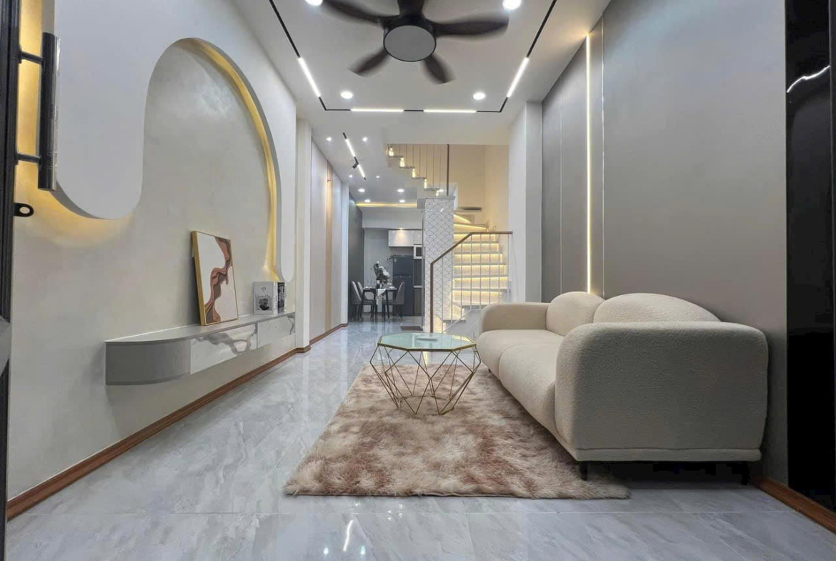 DT 3x10m, 1 trệt 1 lầu đúc, 2 phòng ngủ, 2 toilet, phòng bếp, khách, ban công thoáng mát, nội thất cao cấp, máy lạnh, tủ lạnh, máy giặt…