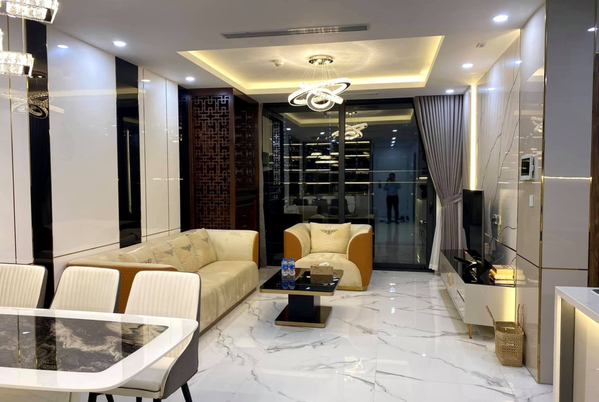 Nhà được ốp hoàn toàn bằng gỗ và đá tự nhiên nhập khẩu, nội thất cao cấp, thang máy + hệ thống cửa kính tự động Việt Nhật.