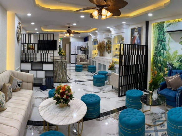 – Các tầng trên gồm 26 căn hộ dịch vụ cao cấp. Sảnh phòng khách thiết kế theo phong cách Châu Âu, kinh doanh Spa, thẩm mỹ làm đẹp, khách rất đông.