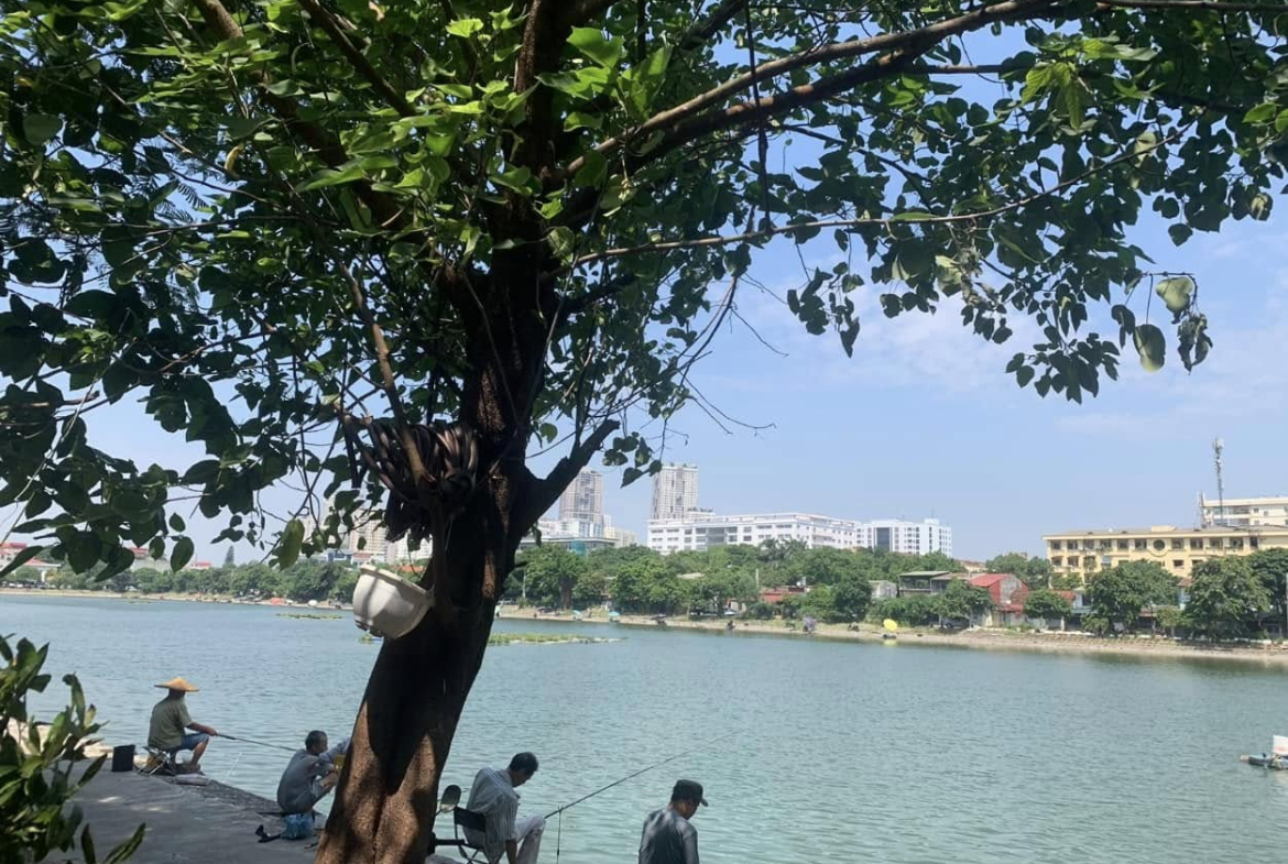 3 bước tới hồ câu Đầm Khê (hồ Bệnh viện), không khí thoáng đãng, mát mẻ.