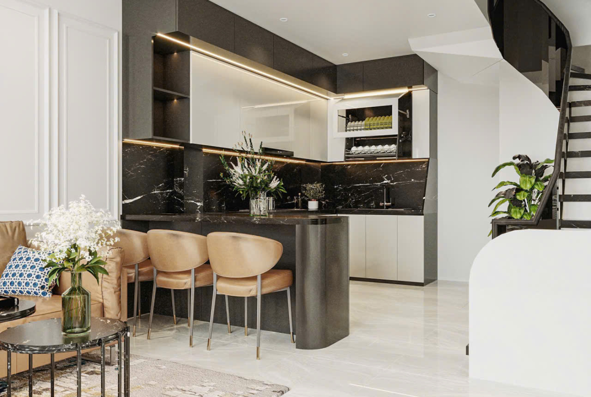 Tầng 1: Phòng khách + bếp