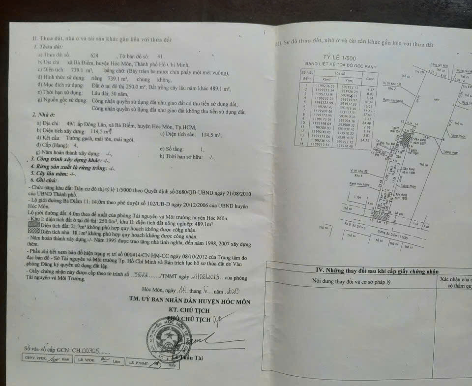 BÁN NHÀ + XƯỞNG MT TRẦN THỊ CÁT (BÀ ĐIỂM 11), HÓC MÔN GIÁ 14,5 TỶ
