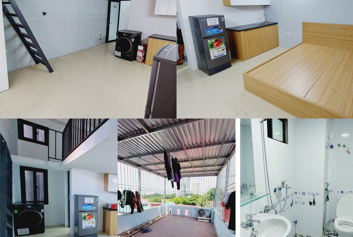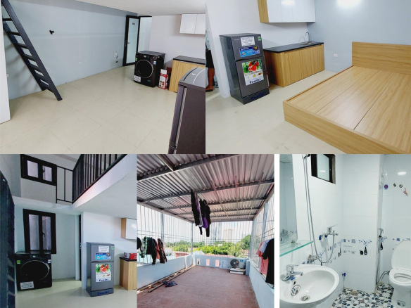 – Trong phòng đầy đủ đồ: Máy giặt, tủ lạnh, quạt trần, tủ bếp, tủ quần áo riêng từng phòng.