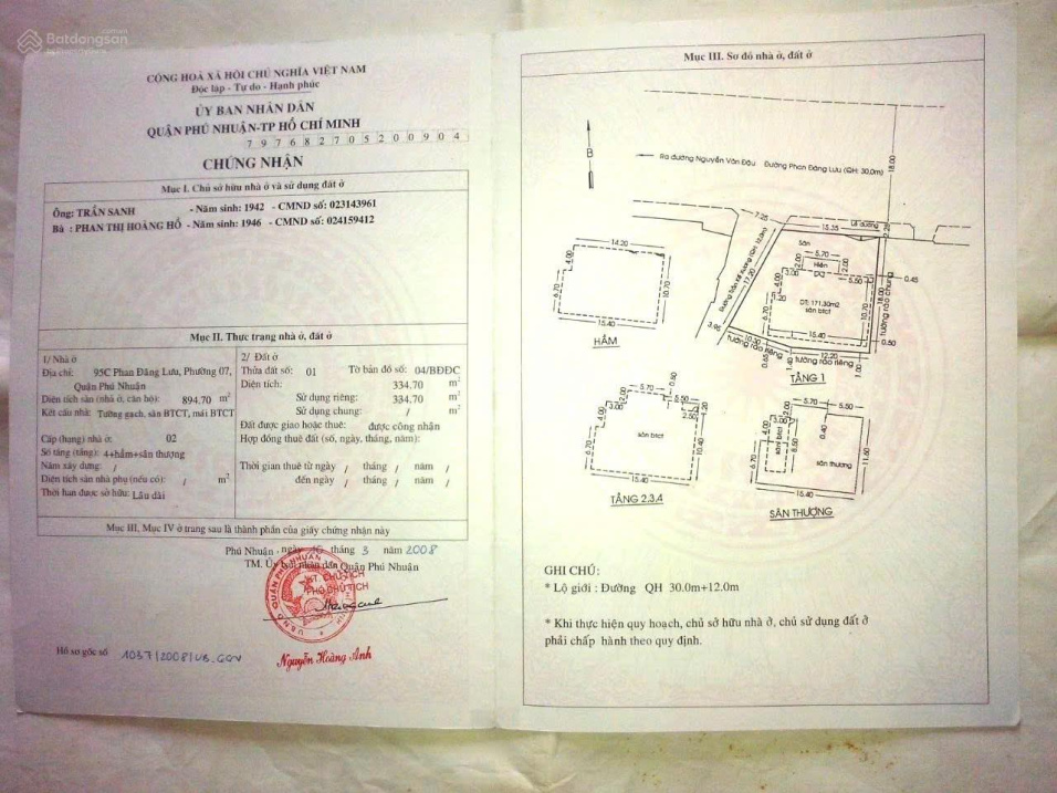 – Diện tích đất được công nhận trên sổ hồng: 334.7 m².