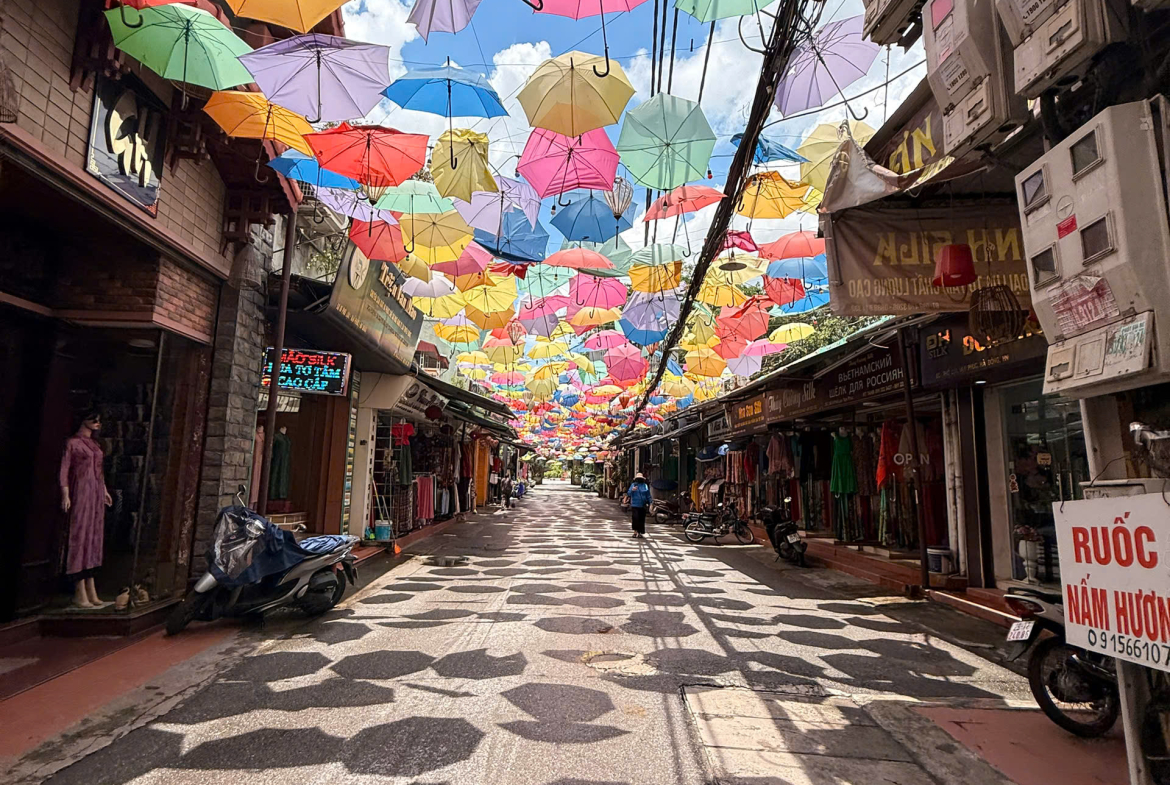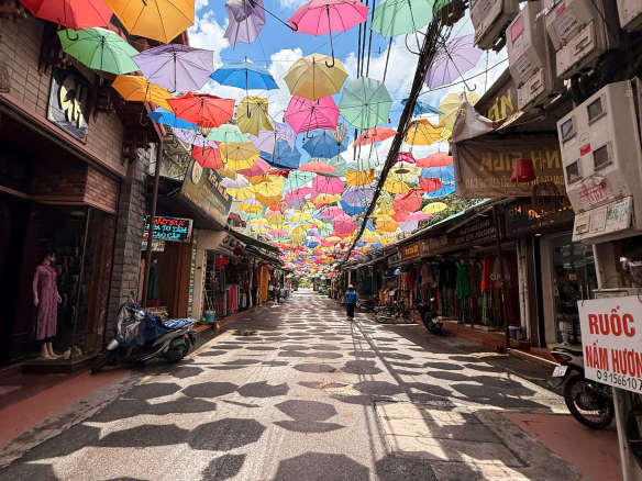Đường phố rộng rãi, vỉa hè thoáng, ô tô dừng đỗ ngày đêm.