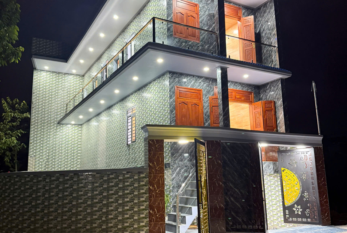 Xây tường 20, móng băng ép cọc phi 22, ốp đá toàn bộ – cực kỳ kiên cố.