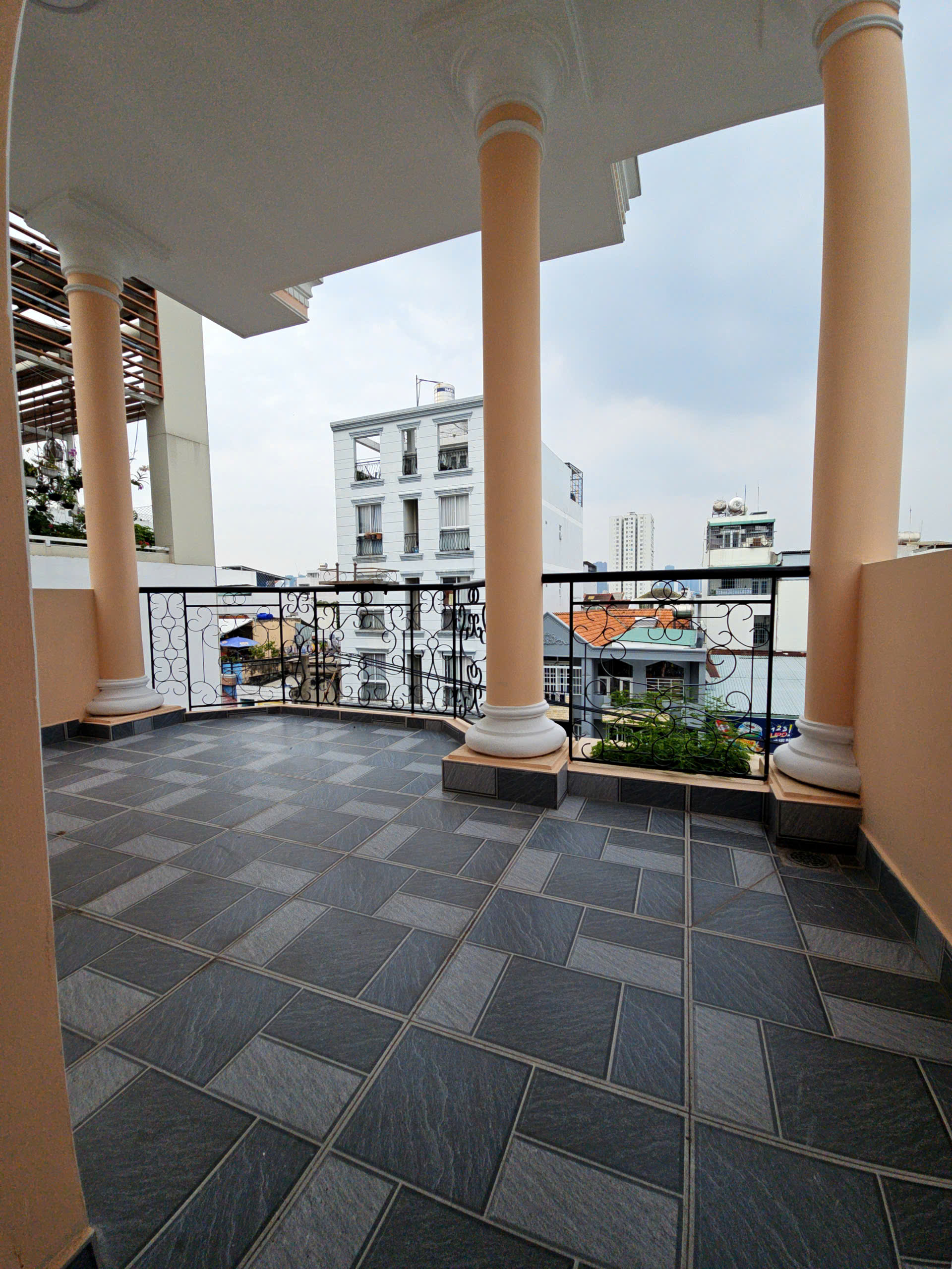 Trệt 2 lầu 2 sân thượng trước sau ban công