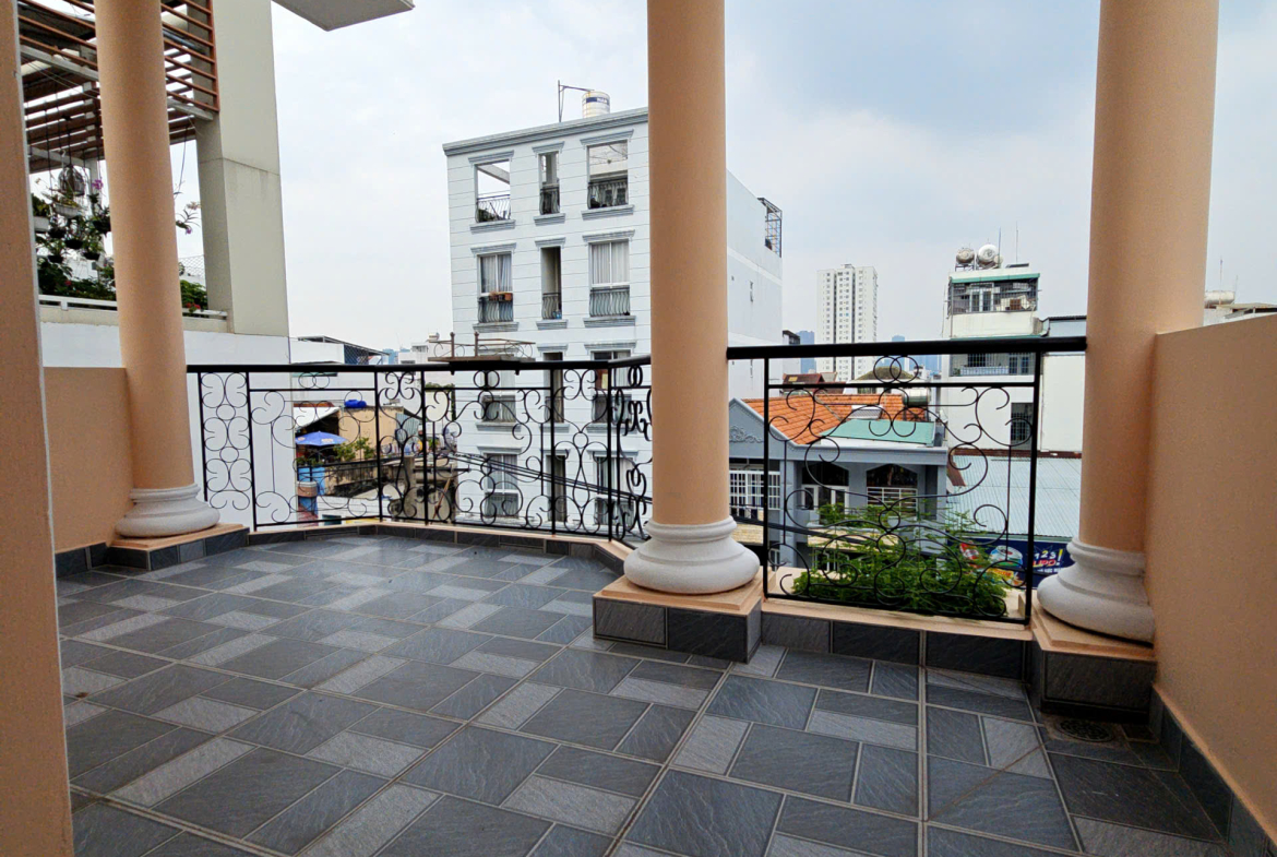 Trệt 2 lầu 2 sân thượng trước sau ban công
