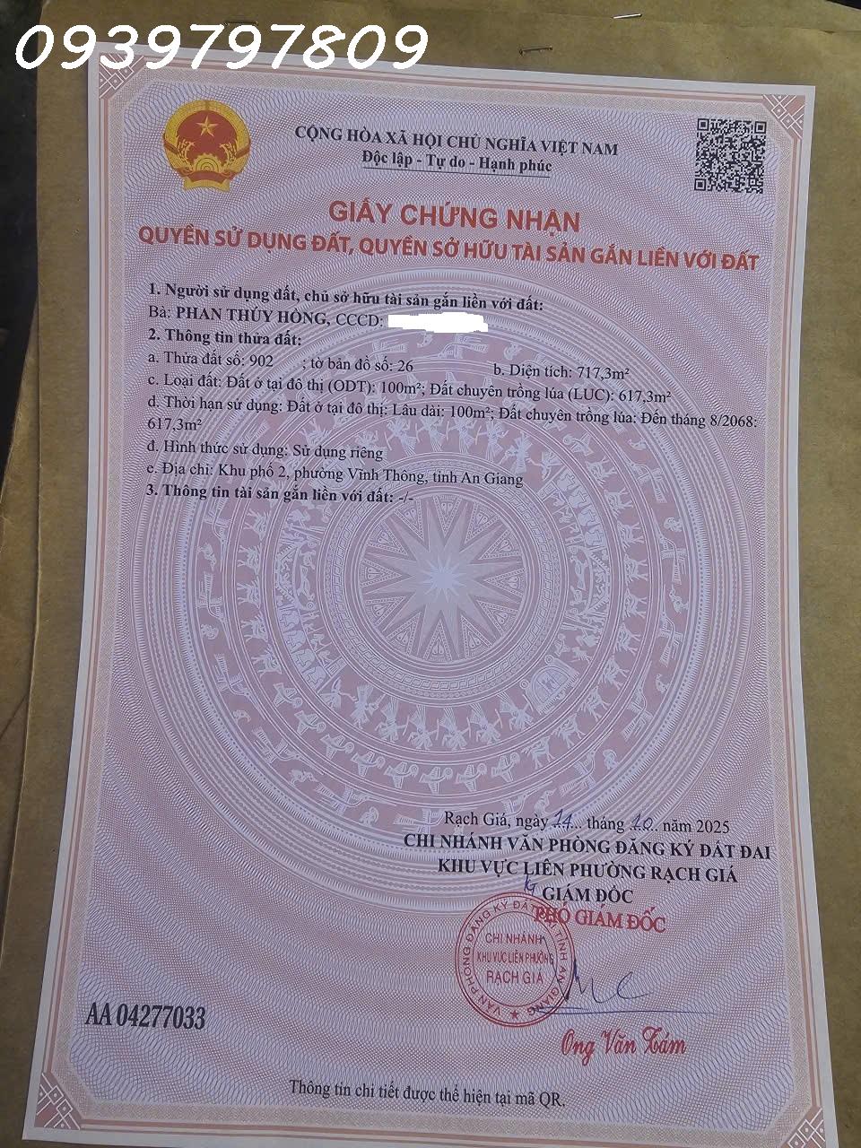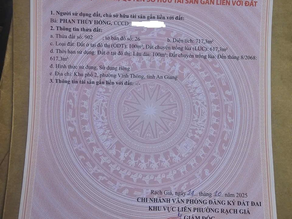 Cần bán 717m2 đất full thổ cư Phường Vĩnh Thông, Rạch Giá, Kiên Giang, giá đầu tư