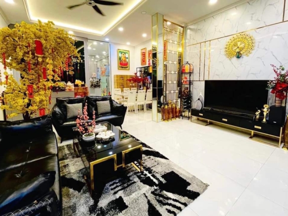 + Kết Cấu: Trệt, 2 Lầu, Bacon đầy đủ công năng gồm sân để ôtô, 4 Phòng ngủ, 5 WC, Phòng thờ, Phòng nào cũng có ban công cửa sổ, Phòng khách, Bếp, Phòng ăn.