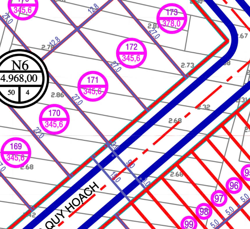 • Diện tích: 345,6m²/lô (ngang 12,8m x dài 27m)