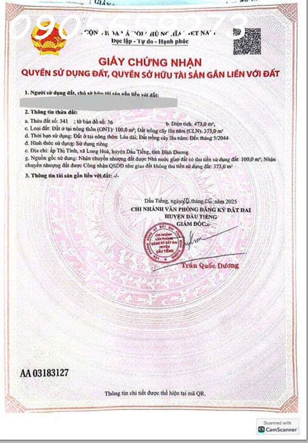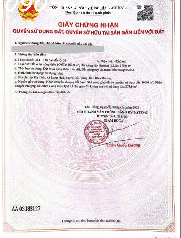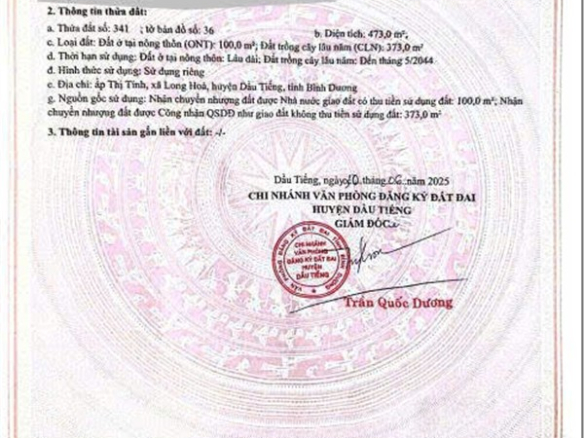 Cần bán gấp 650m2 (15×42) có 300m2 thổ cư tại DT750 – Long hòa DầuTiếng