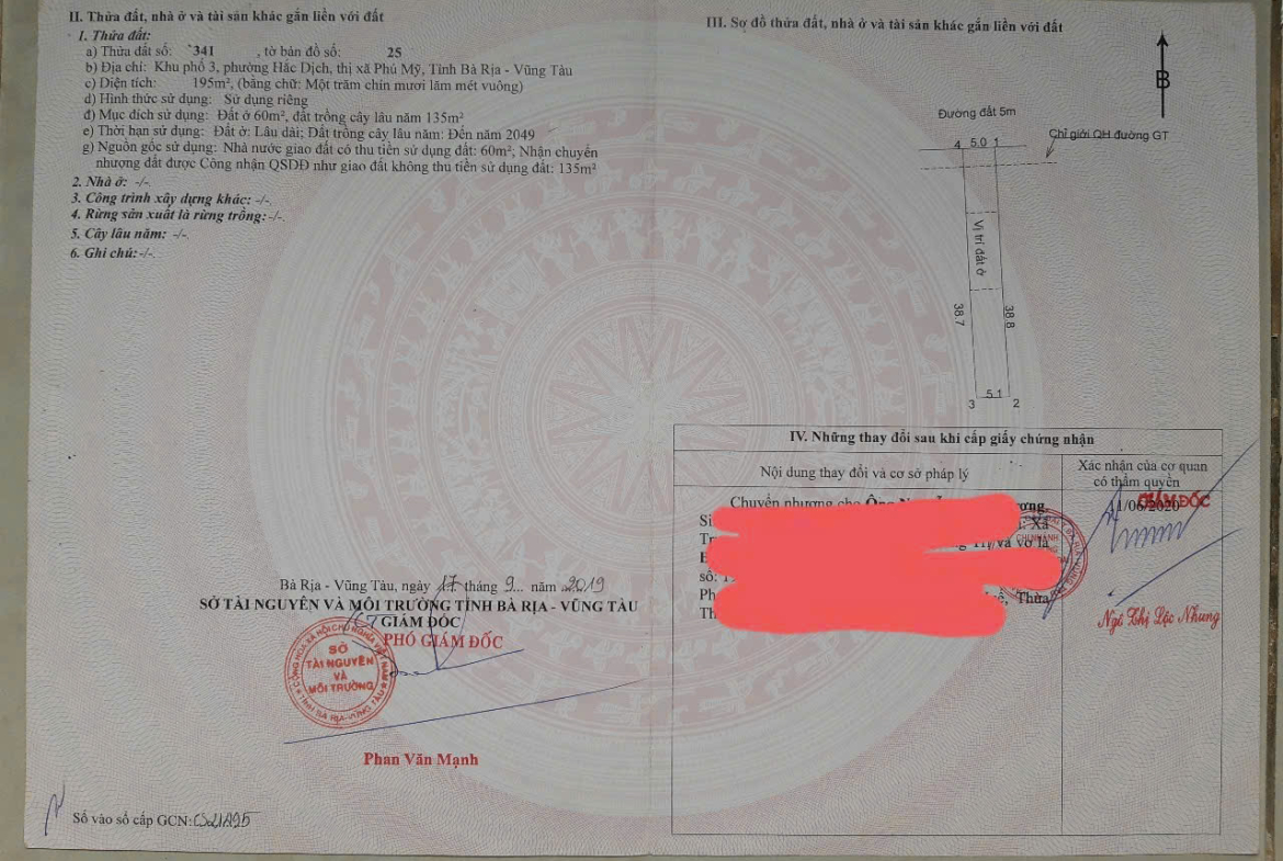 • Diện tích: 5x38m 190m2 có 60m² thổ cư