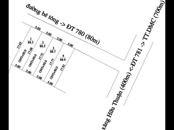 Diện tích: 5×17,5m (50m2 thổ cư)