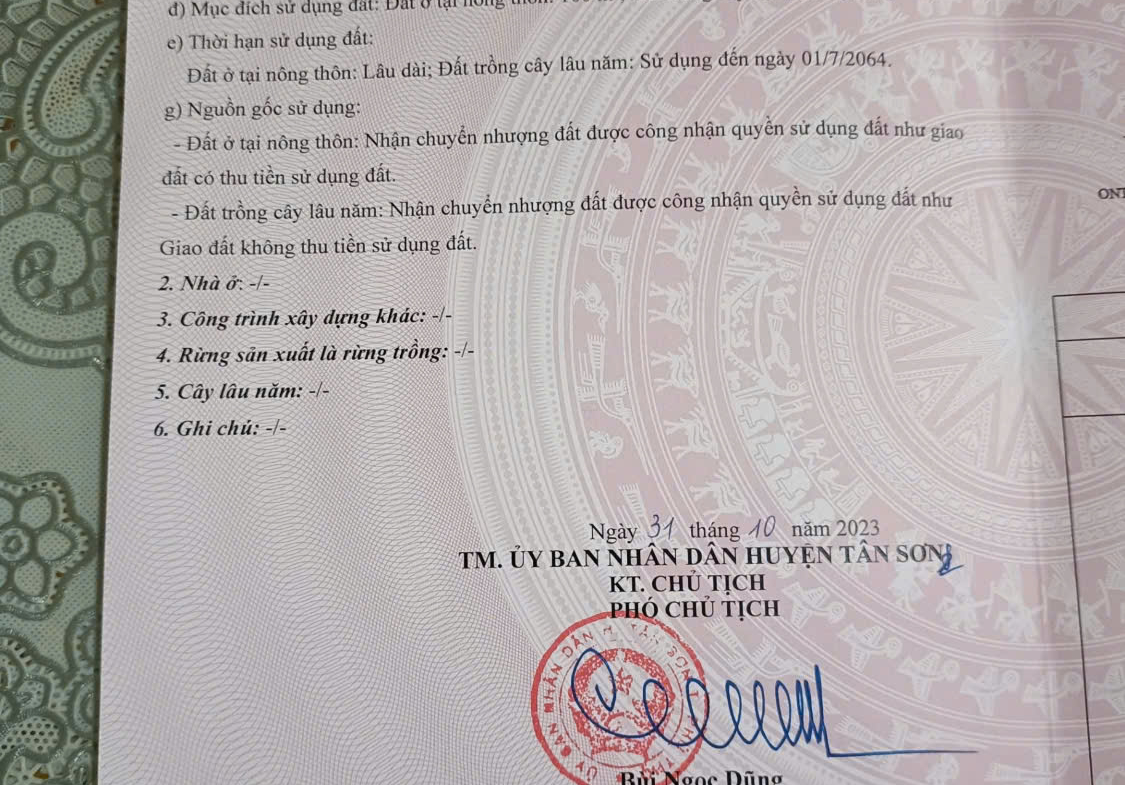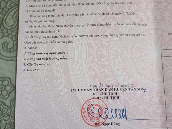 * Diện tích: 390m² (sổ đỏ, đất thổ cư 100%)- mặt đường 6m- chiều dài 65m