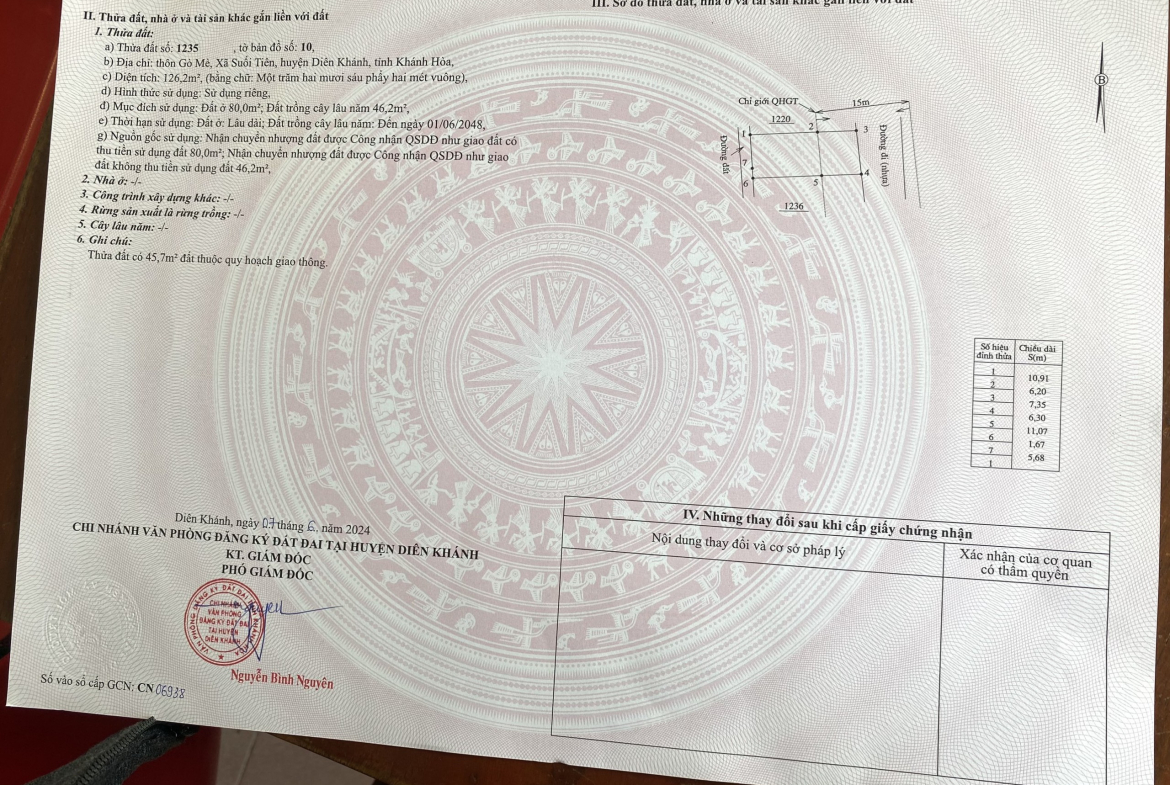 – Diện tích 126m2 sau quy hoạch còn 80m ngang mặt tiền rộng đẹp 7,35m2