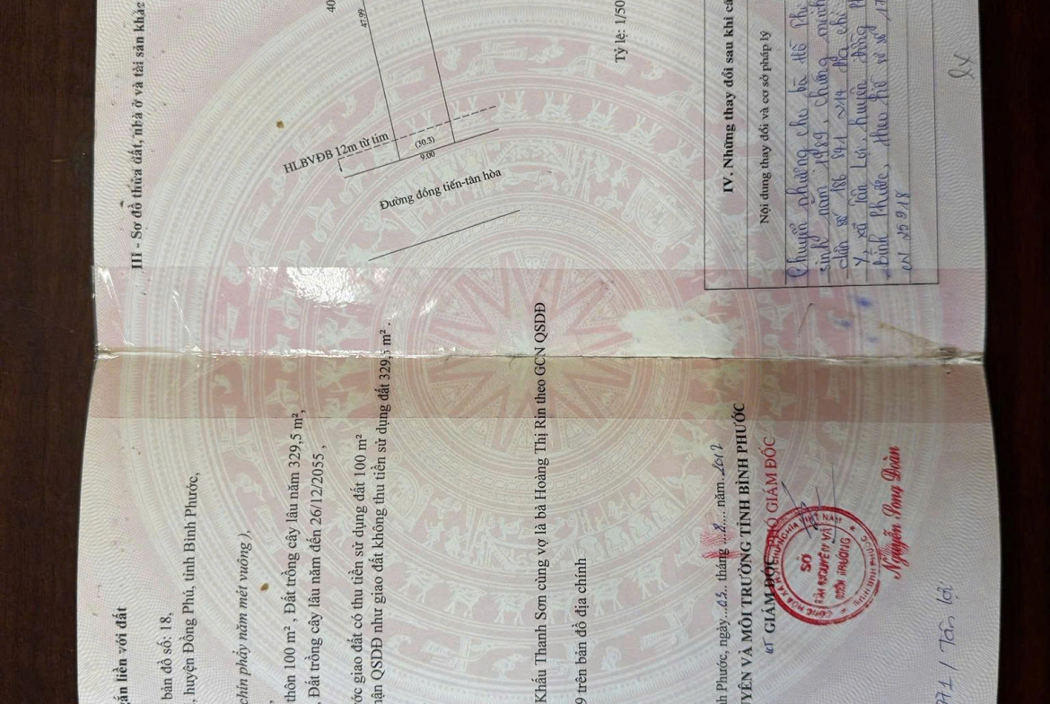 Cần bán lô đất tại xã Tân Lợi, huyện Đồng Phú, tỉnh Bình Phước