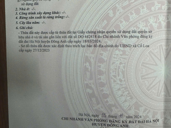 Chính chủ cần bán mảnh đất diện tích 510m², đất trồng cây lâu năm ( gần Vinhomes Đông Anh cách khoảng 2km).