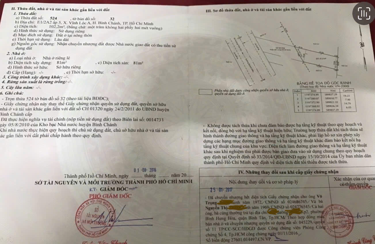 Cần Bán Nhanh Lô Đất Tại Vĩnh Lộc a, Huyện Bình Chánh , TP HCM.