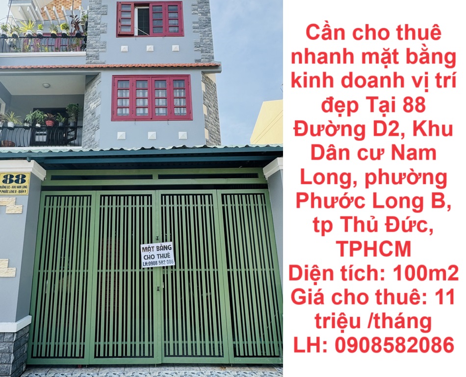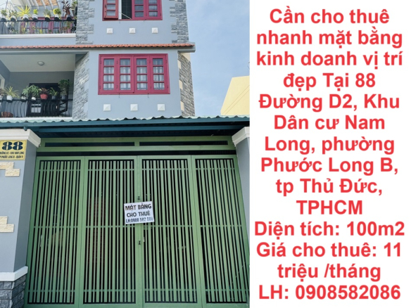Cần cho thuê nhanh mặt bằng kinh doanh vị trí đẹp Tại phường Phước Long B, tp Thủ Đức, TPHCM