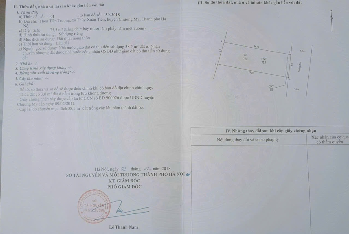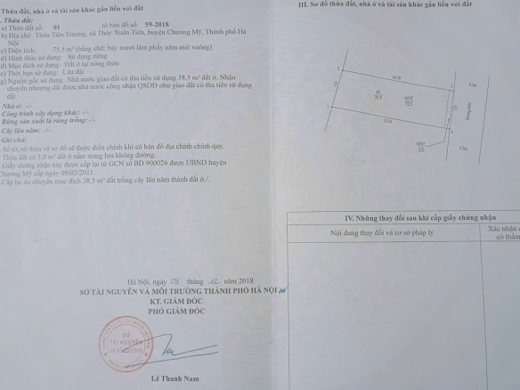 – Diện tích sổ : 75m2 mặt tiền 5m, hướng đông nam