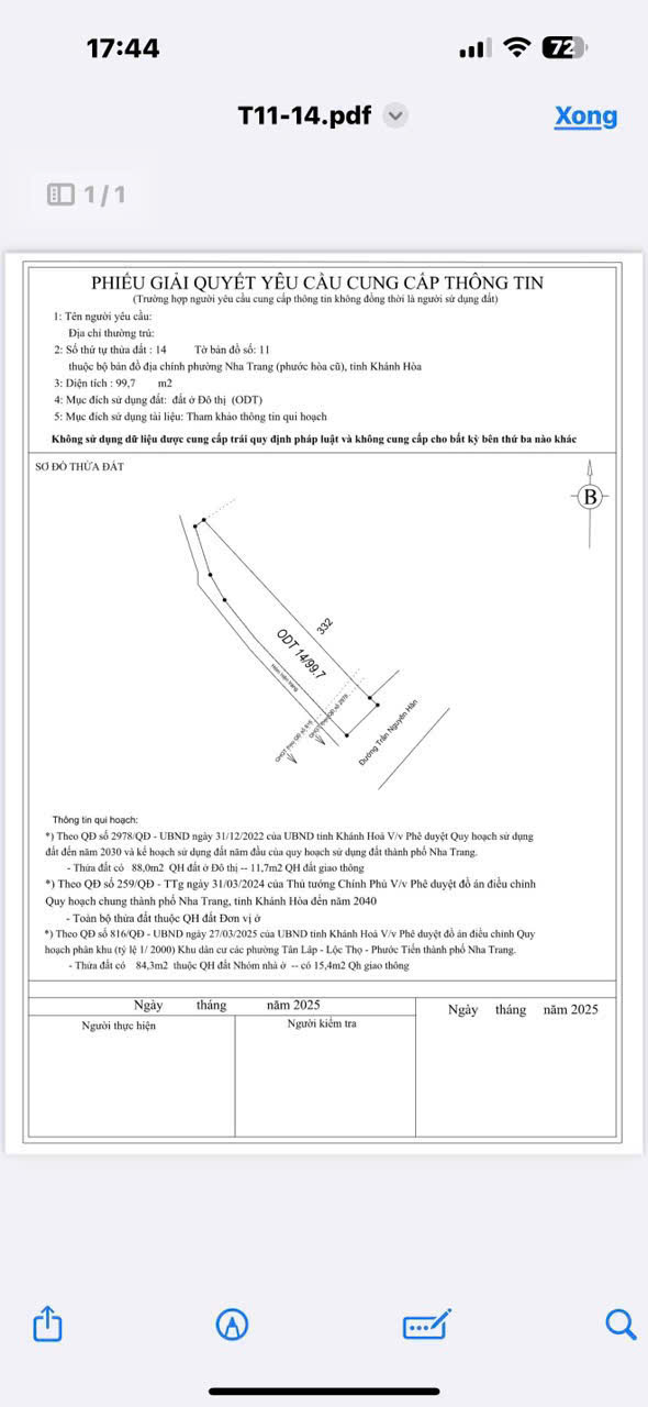 Diện Tích : 99.6m2 Ngang 4.4m ( Đông Nam )
