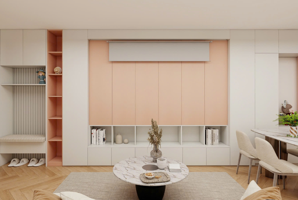 + Không gian sống rộng mở – đầy đủ công năng: Thiết kế thông minh, tối ưu ánh sáng và gió trời. Khu vực bếp tách biệt, ban công thông thoáng, giúp căn hộ luôn mát mẻ và sạch sẽ.
