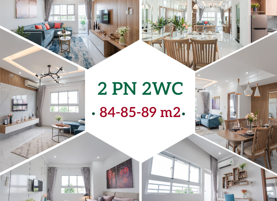– Căn 2PN – 2WC phòng khách thoáng rộng, phòng ngủ có từ 1-2 cửa sổ, tổng diện tích 85 m2.