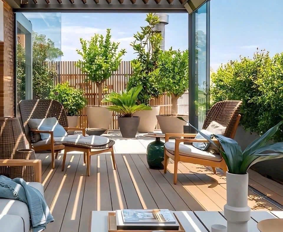 Ban công 29,21m² – thoáng rộng, trồng cây, đặt bàn trà, set góc chill cực đẹp
