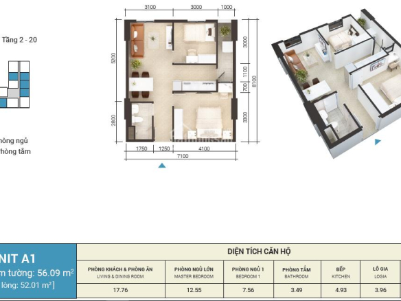 Diện tích nhà 56 m²