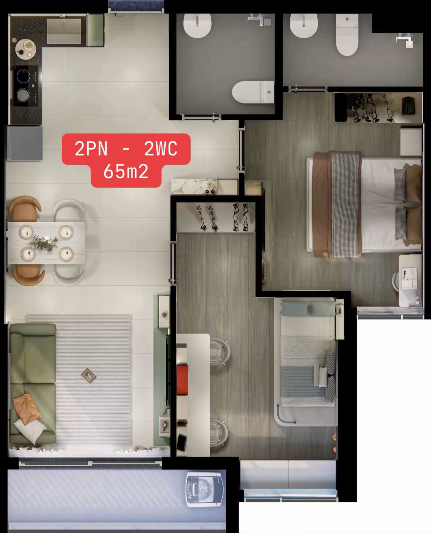 • Diện tích nhà 65 m²