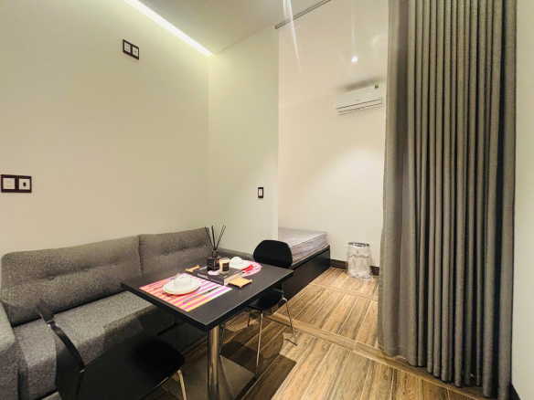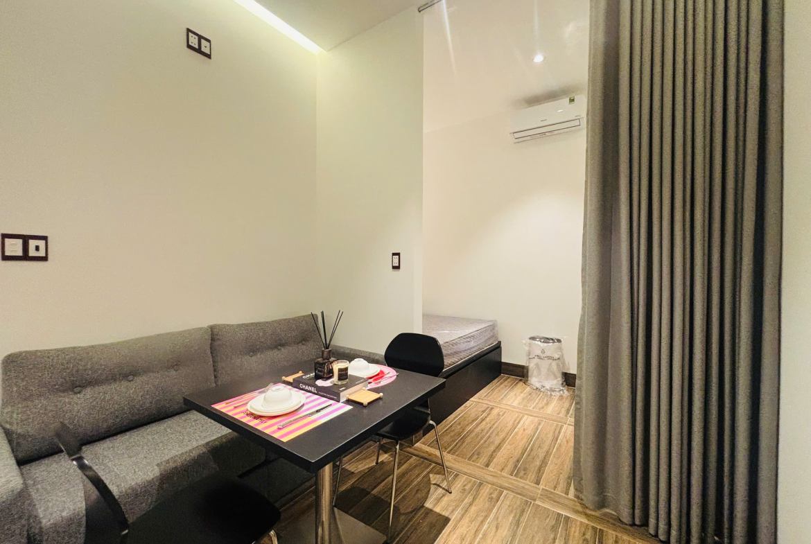 Studio được trang bị full nội thất, phù hợp người đi làm hoặc cặp đôi.