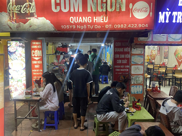 NGÕ TỰ DO. Phố ăn uống huyền thoại ở Hà Nội khu vực 3 trường đại học trọng điểm của cả nước Bách, Kinh, Xây ạ. Giờ cơm thì đông như đèn kéo quân mà ngoài giờ cơm thì vẫn cứ như nêm.