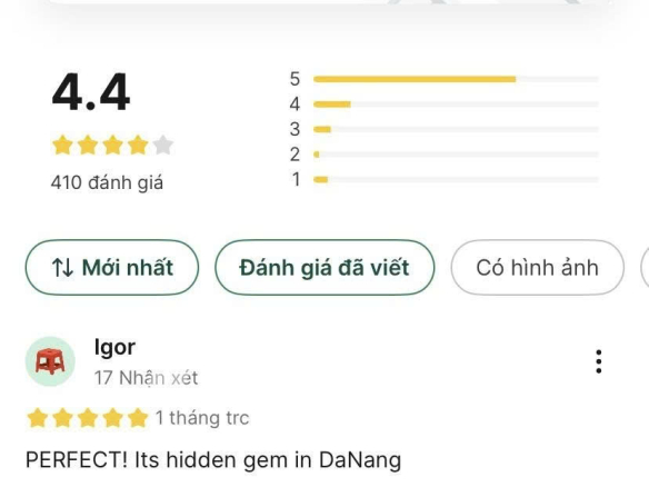 – Quán được khách du lịch đánh giá cao trên Grab, Google.