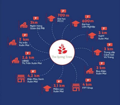 – The Spring Town sở hữu vị trí đắc địa bậc nhất khu vực Xuân Mai và kết nối giao thông vô cùng linh hoạt tới các khu trọng điểm lân cận trong trung tâm.