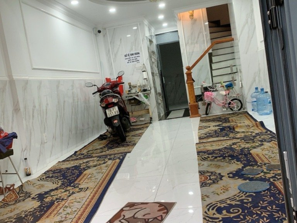 DT: 4.1 x 28m = 115,5m2(CN). Trệt + 3 lầu + ST + 6PN + 6WC.
