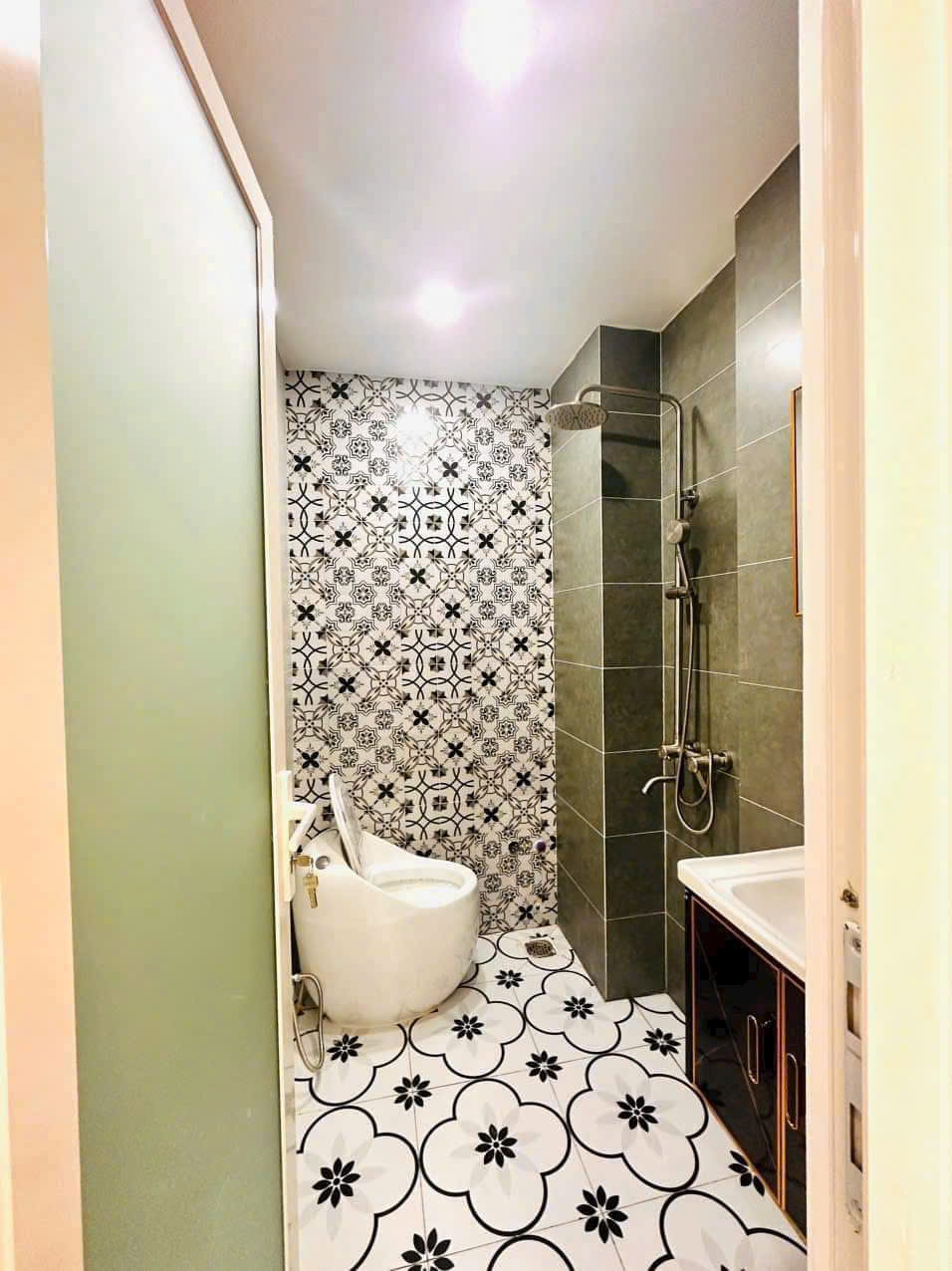 Kết cấu : 1 trệt 3 lầu sân thượng gồm sân để xe, PK, Bếp, 6PN, 7WC riêng biệt từng phòng, sân thượng trước sau
