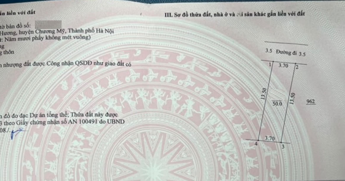 Cc gửi bán 50m2, 1.x tỷ, ĐẤT GIÃN DÂN xã Thuỵ hương, Chương Mỹ, HN.