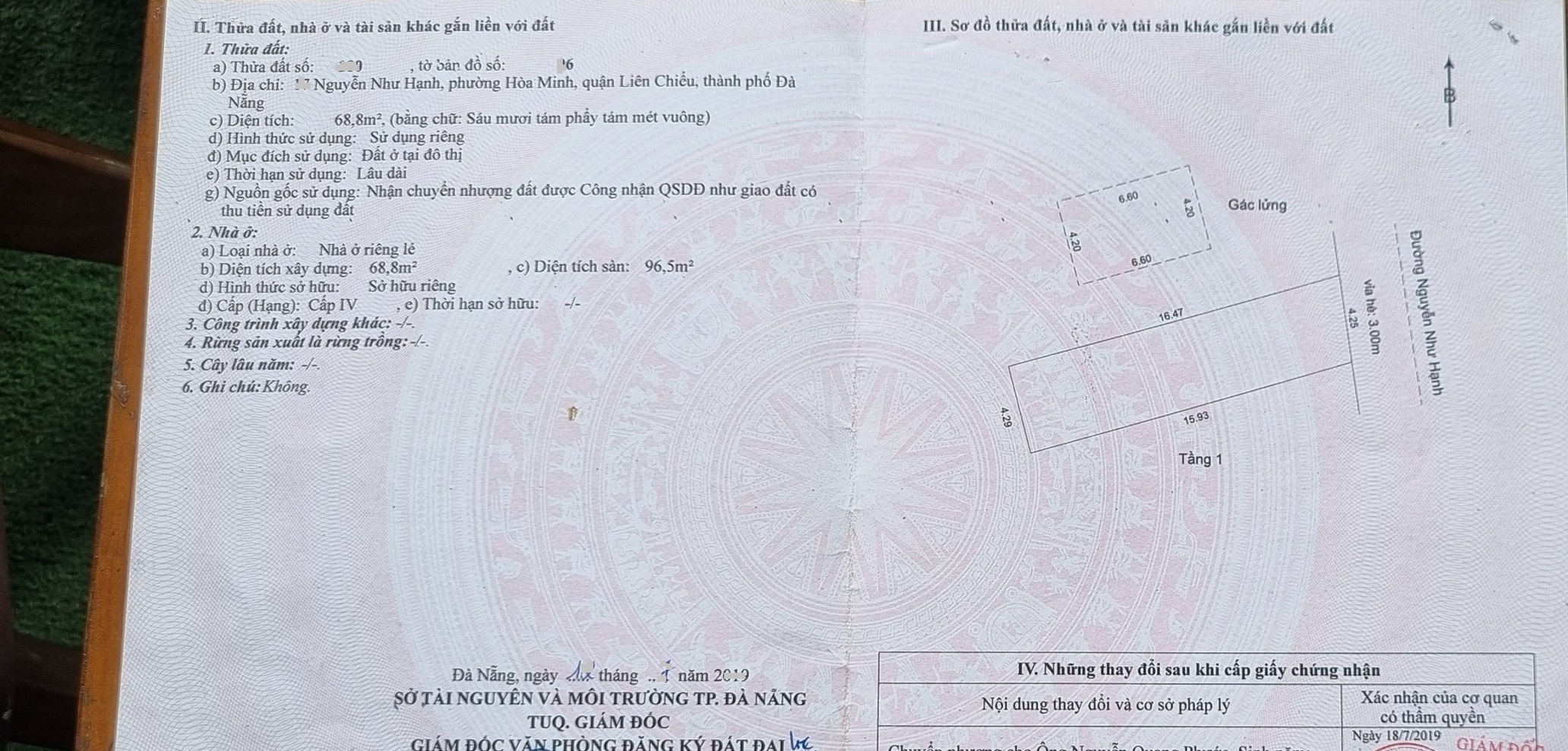 Diện tích đất 68 m²