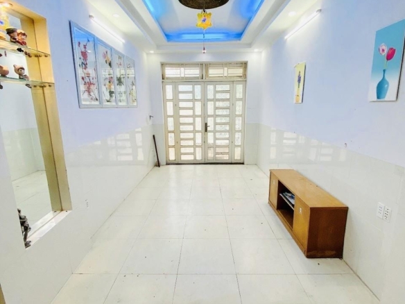 Nhà kết cấu kiên cố với 1 trệt 1 lầu tổng 3 PN + 2WC + PK, sân. Nhà thiết kế thông thoáng chừa sân trước và bên hông., dọn vào ở ngay.. + Hẻm xe hơi gần nhà, khu vực an ninh yên tĩnh, Pháp lý chuẩn, sổ vuông, công chứng ngay.