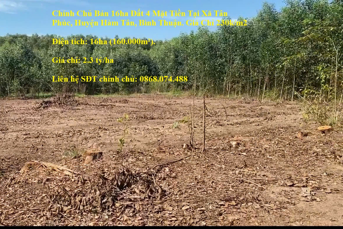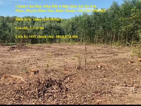 Chính Chủ Bán 16ha Đất 4 Mặt Tiền Tại Xã Tân Phúc, Huyện Hàm Tân, Bình Thuận. Giá Chỉ 230k/m2