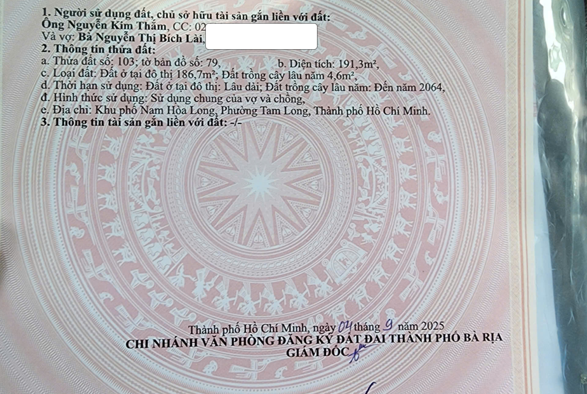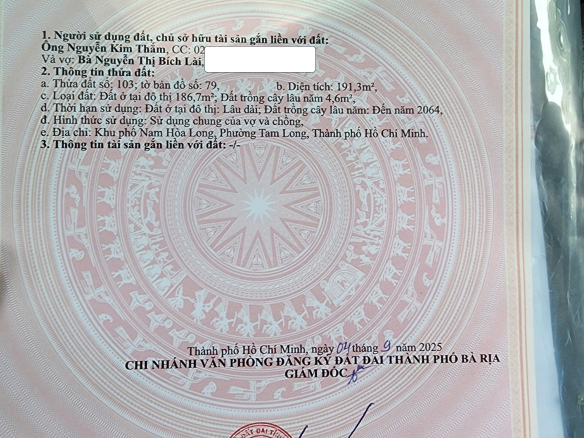 CHÍNH CHỦ BÁN 191,3m² ĐẤT FULL THỔ CƯ SẴN SỔ – 2 MẶT TIỀN TỈNH LỘ 52 HÒA LONG- TP BÀ RỊA