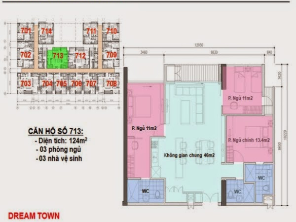 Chính chủ bán căn 3ngủ3vs 124m2 tòa CT1 dự án Dream Town Tây Mỗ nội thất liền tường giá chỉ 3tỷ450